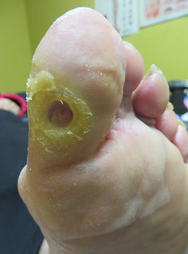 In the example to the right, there is too much force on the outside of the foot, creating the ulcer beneath the small toe.